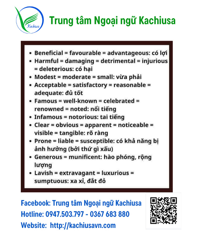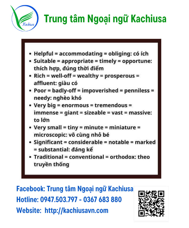 Việc sử dụng từ vựng lặp lại hoặc thiếu linh hoạt có thể khiến bạn mất điểm đáng tiếc. Bài viết này chia sẻ bộ 30 tính từ đồng nghĩa giúp bài viết của bạn trở nên đa dạng, tự nhiên và chuyên nghiệp hơn. Những từ này không chỉ phù hợp cho các bài luận IELTS mà còn nâng cao khả năng diễn đạt trong tiếng Anh học thuật và giao tiếp. Cùng khám phá và áp dụng ngay nhé!