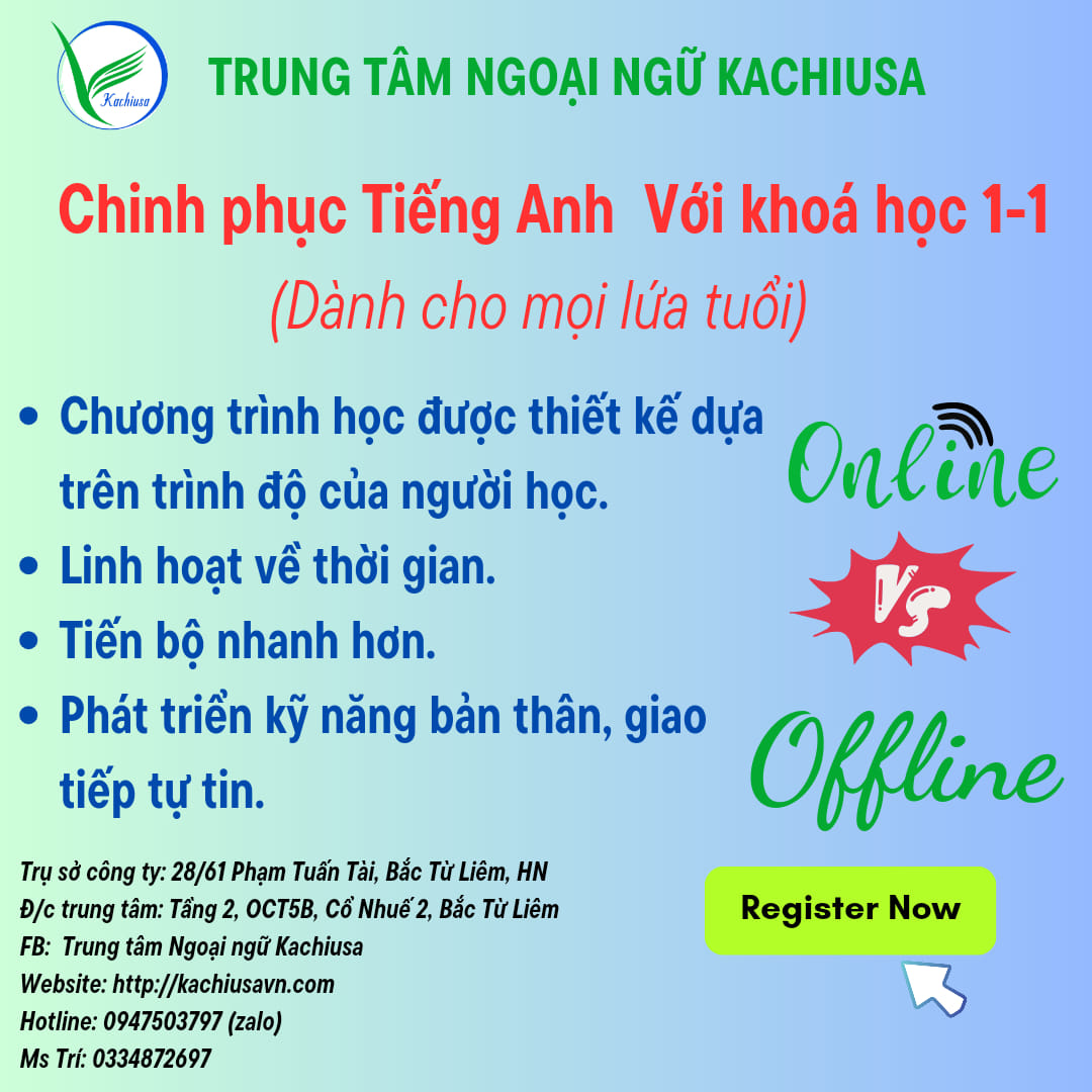 Chinh phục Tiếng Anh với Khoá Học 1-1 tại Kachiusa ![]()