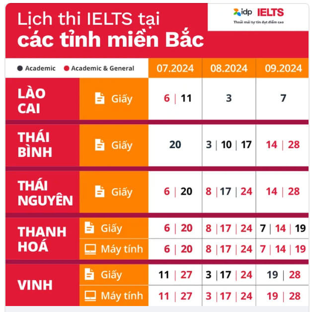 Lịch thi tại: Lào Cai, Thái Bình, Thái Nguyên, Thanh Hóa, Vinh
