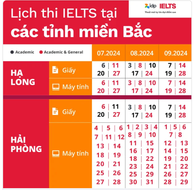 Lịch thi tại Hà Nội, Đà Nẵng, TP HCM
