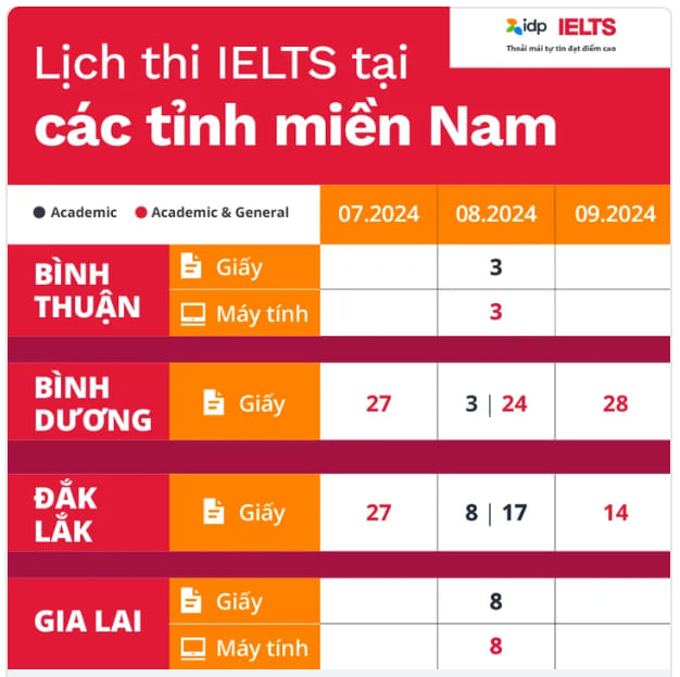 Lịch thi tại: Bình Thuận, Bình Dương, Đăk Lăk, Gia Lai