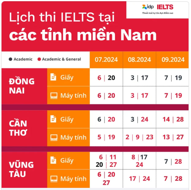 Lịch thi tại: Đồng Nai, Cần Thơ, Vũng Tàu
