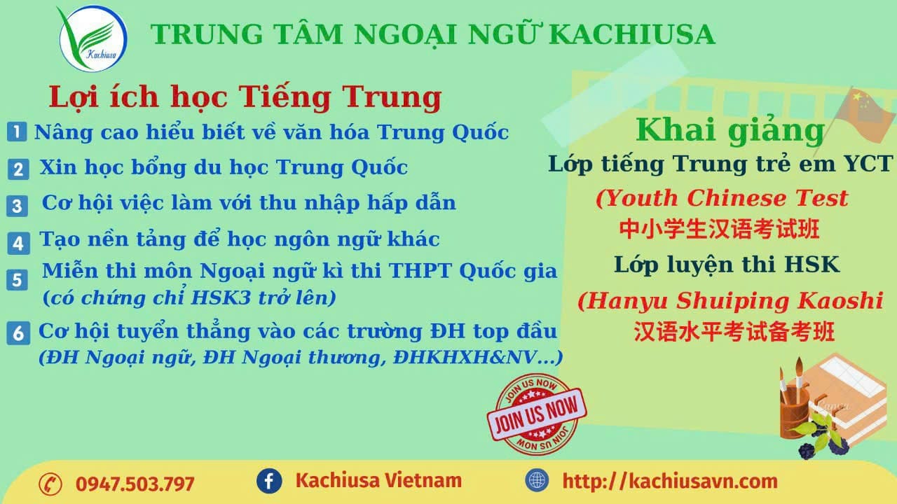 Trung tâm Ngoại ngữ Kachiusa liên tục tuyển sinh các lớp: